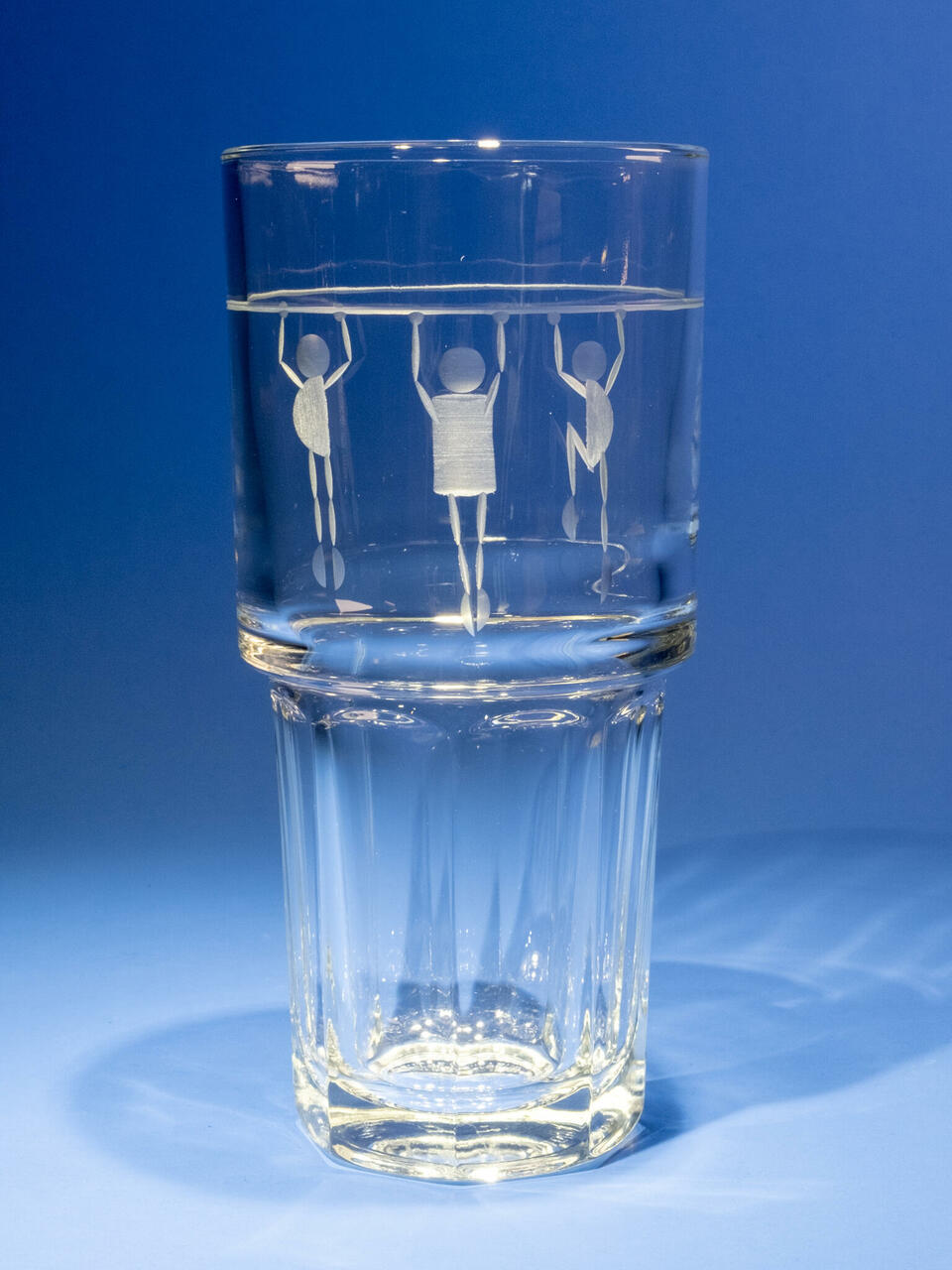 Meine Seiltänzer sind die im kubistischen Stil markant ins Glas gravierte Figuren. Sie machen es nicht nur unverwechselbar, sondern sorgen für ein richtig prickelndes Tasterlebnis.