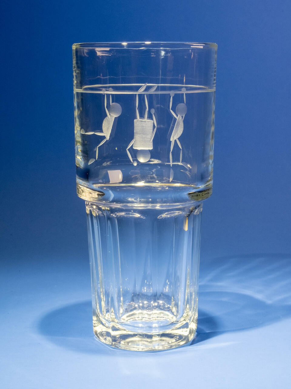 Meine Seiltänzer sind die im kubistischen Stil markant ins Glas gravierte Figuren. Sie machen es nicht nur unverwechselbar, sondern sorgen für ein richtig prickelndes Tasterlebnis.